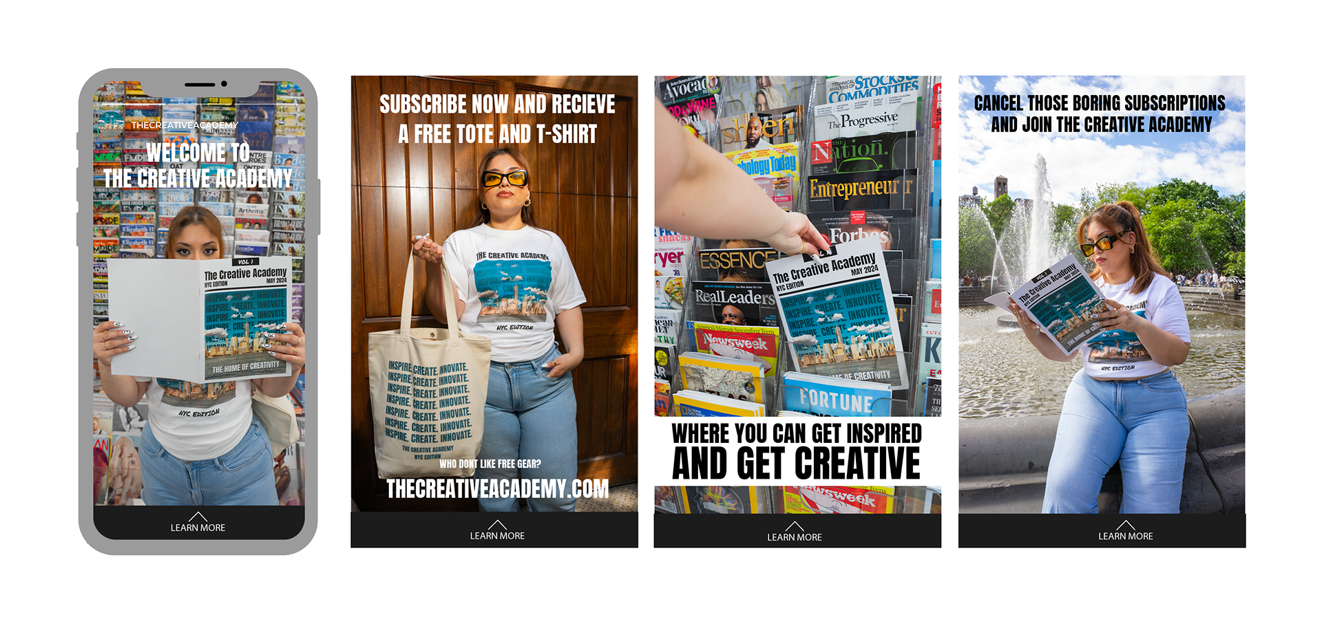 The Creative Academy Magazine features hand-selected creatives from NYC who share their unique journeys of discovering and embracing their craft. They delve into why they’ve chosen to pursue the creative path and also discuss overcoming imposter syndrome. These stories aim to inspire creatives of all ages who may feel stuck or inadequate, encouraging them to push forward in their creative pursuits.